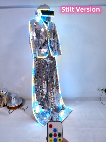 This led light mirror man stilt walker costume is suitable to perfect for entertaining crowds, party, dancing shows at night clubs and night parties.